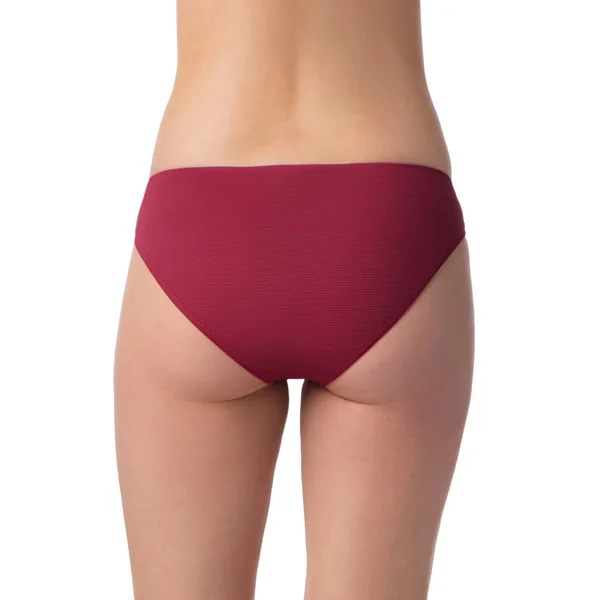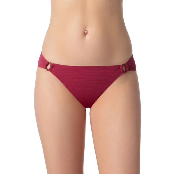 Bikini bottom features textured fabric and tortoise ring details on sides. Offers moderate coverage.
