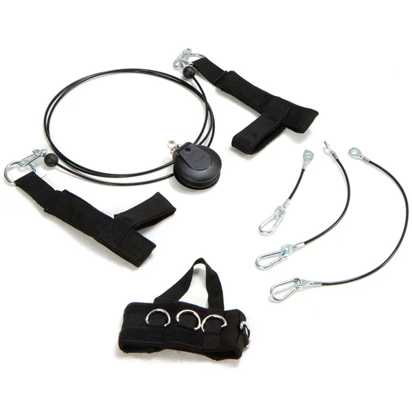 • Multiple center-pulley attachment points double arm-cable load and increase lower extremity ROM.