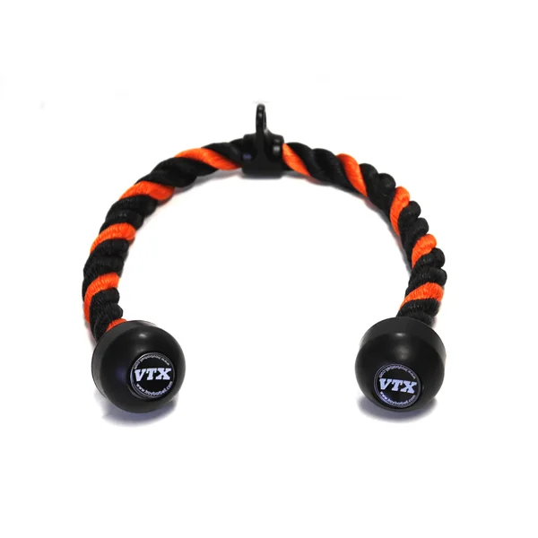 This is a commercial quality triceps rope. Measures 36″ long. This rope is made of polyester fibers for moisture and fray resistance. Can withstand 1500 pounds of pressure. Solid polymer ends are permanently attached and feature the Troy VTX logo. Weighs 1.76 pounds.