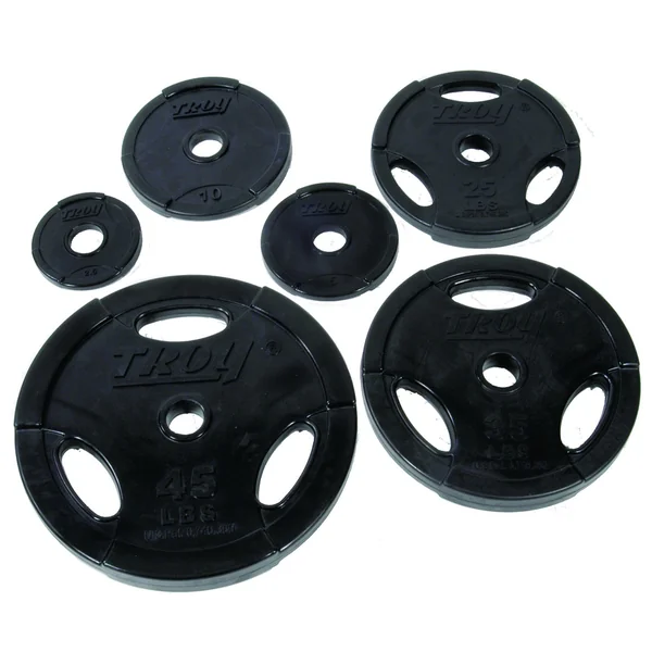 Our Troy premium grade rubber encased Quiet Iron EZ-lift plate is one of the top plates on the market today. Not only does it protect floors and equiptment, the interlocking feature allows the user to load more plates onto machines and bars to maximize workouts. These olympics QEZ plates also maintain a plus or minus accuracy level of 2%. Available in six weights