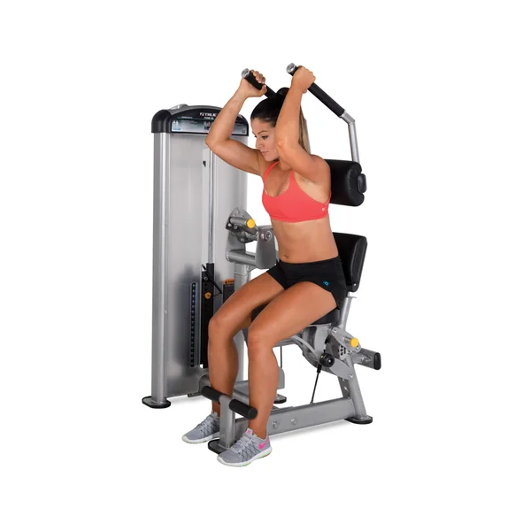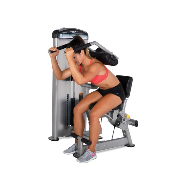 - Contoured lumbar pad encourages pelvic stabilization and isolation of abdominal region