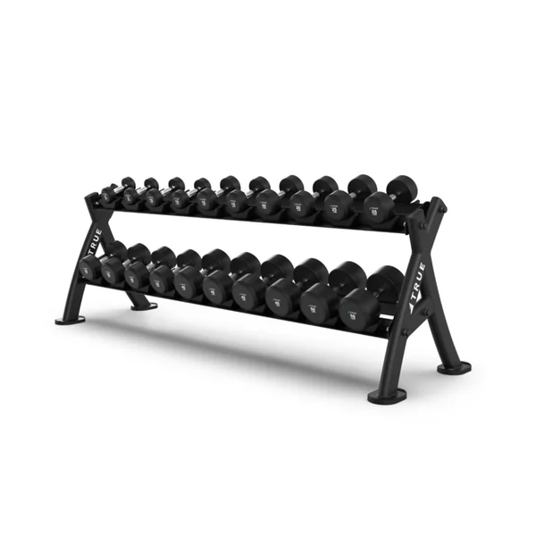 • Trays angled at 20 degrees to facilitate easy placement and removal of dumbbells