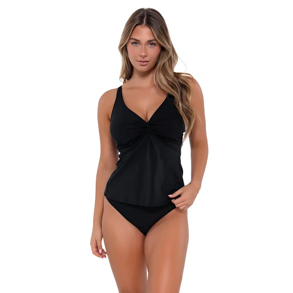 This sleek twist tankini provides full coverage and support, perfect for any woman who is seeking a fashionable top with a strong foundation. Special features include over the shoulder adjustable straps, hidden floating underwire, powernet bra for maximum support, plush logo picot elastic, and matching colored lining.