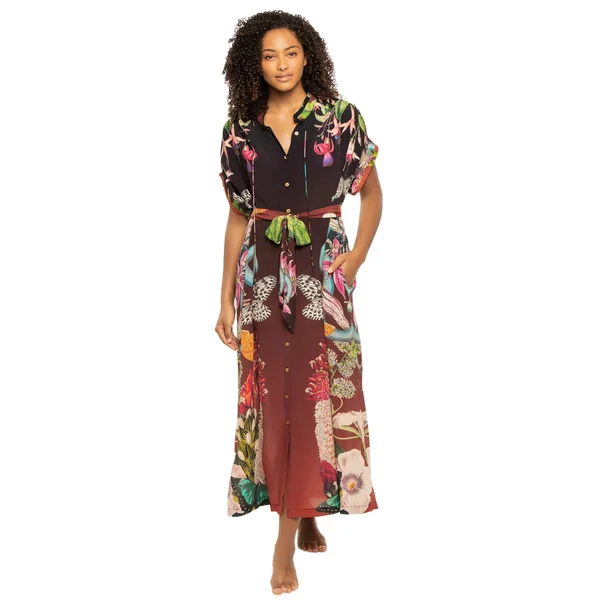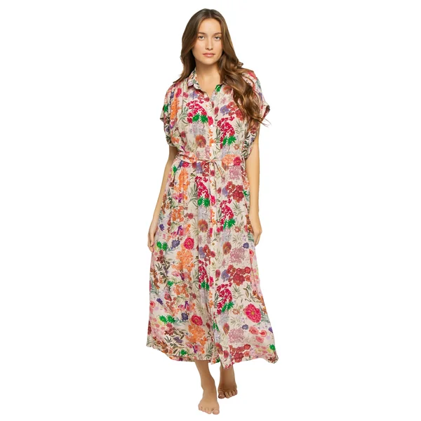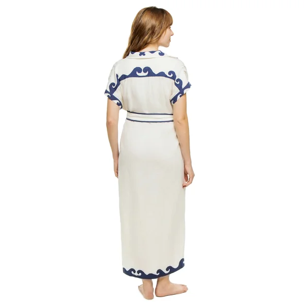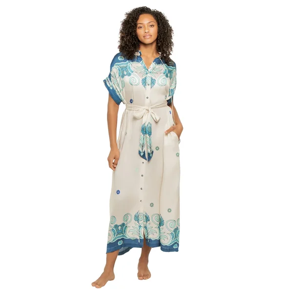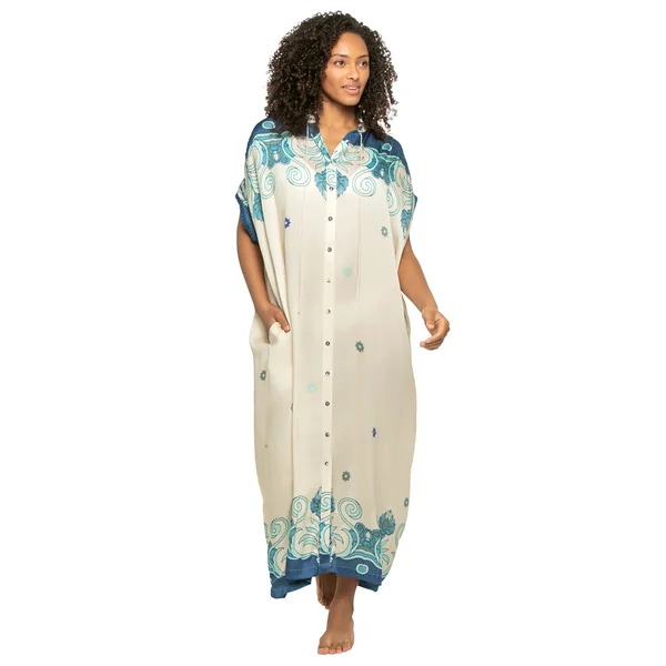 Valerie caftan has an oversized fit and optional adjustable tie. Features a button up front with collared neckline. Made from linen, from the flax plant, it is not only strong but breezy and soft to the touch.