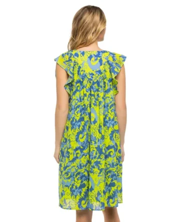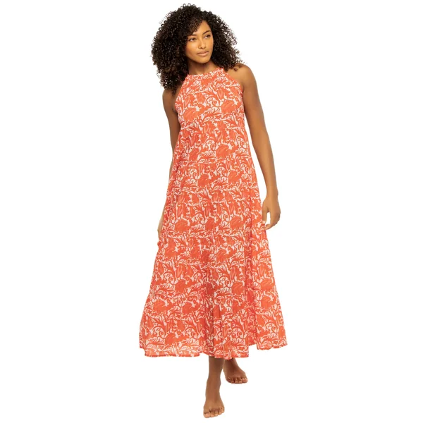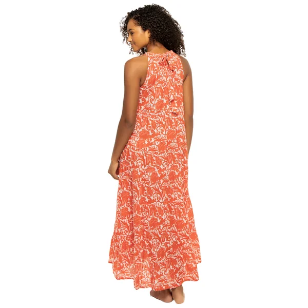 Valley maxi dress features a gathered neckline with tiered ruffles and offers a relaxed fit with ties at neck.