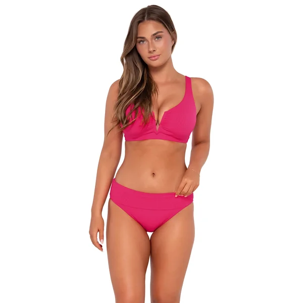Embrace your feminine curves with the Vienna v-wire top. This elegant design is crafted to enhance and flatter your natural bustline. This bikini top has a hidden underwire and soft straps that convert from over the shoulder to crossback or halter for a truly customized fit. Other features include removable cups and a hidden bra closure.