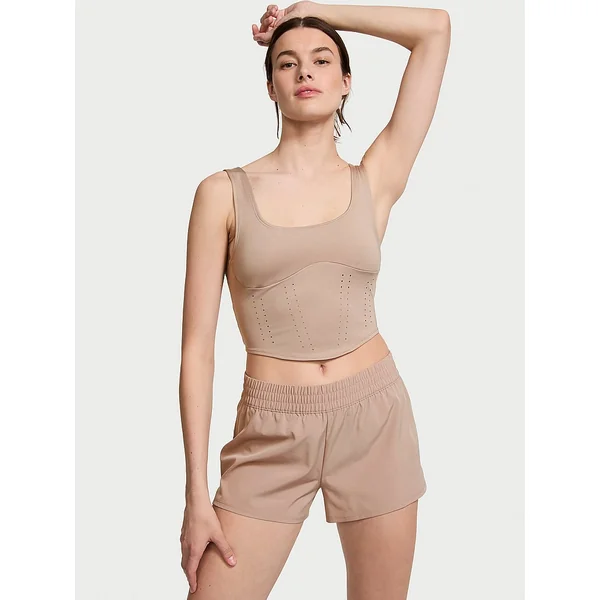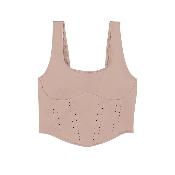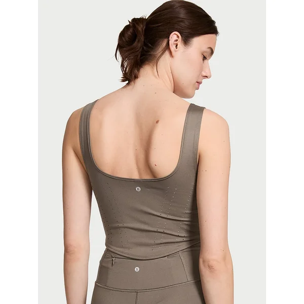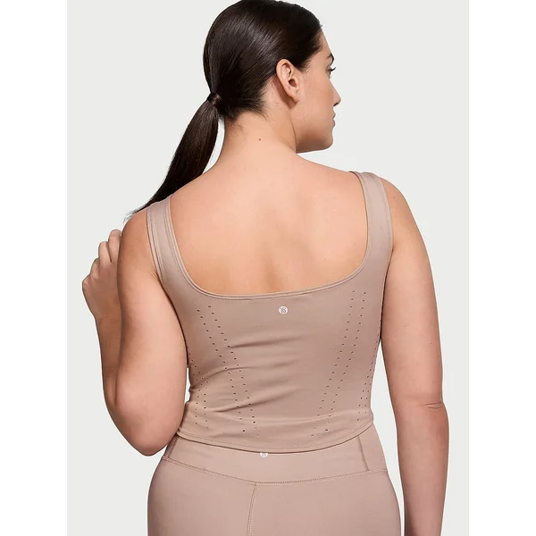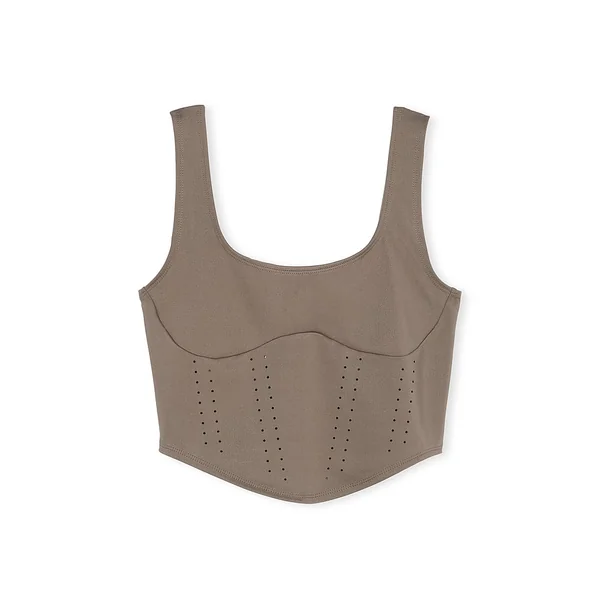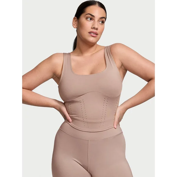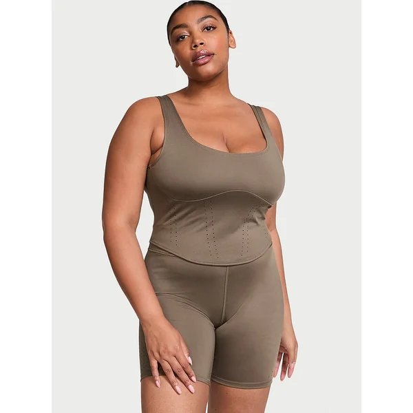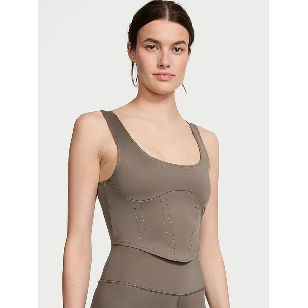 Stretchy and sleek with a figure-flattering silhouette, this corset-inspired tank takes shape with curvy seaming and airy perforated details.
