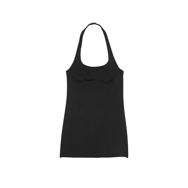 It’s all in the details with this sleek activewear dress, from the chic halter styling to the cool perforated accents. Shapely seaming and interior shorties finish the design.