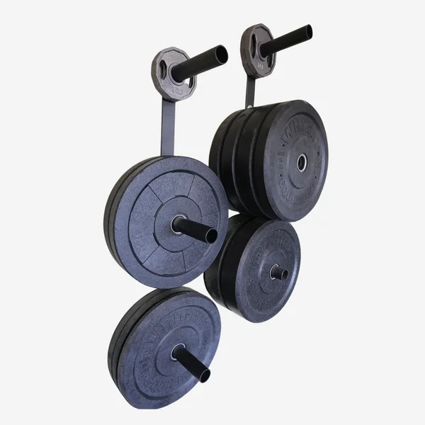 Our wall mounted bumper plate storage is a 3 peg solution to this problem.