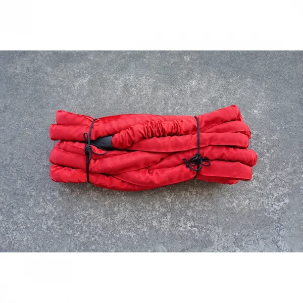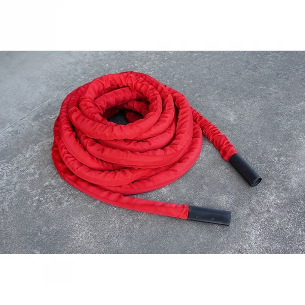The Warrior Battle Ropes feature knurled, metal handles for a more secure grip and to eliminate handle separation from the ropes. A protective red cover prevents the ropes from fraying and cutting. The inside of the rope is made by machine in order to achieve a consistent diameter and weight control. Made with flexible material in the interior to give the ropes the best flexibility for ease of use.