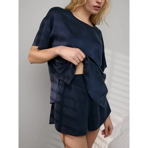 Give your pajama drawer the update it deserves with this high-end sleep set. Thoughtful design details lend modern style (see the high-waist and side slits), while 100% Washable Mulberry Silk is ultra-soft to the touch and helps maintain body temperature throughout the night. Outside of the bedroom? Pair it with a kitten heel, low bun, and silver hoops for effortless, after-hours chic.