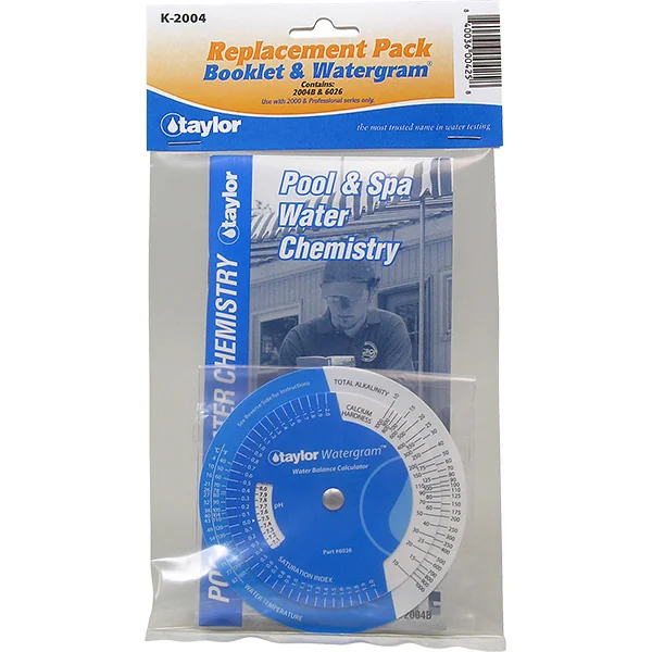 Taylor Technologies’ swimming pool and spa water chemistry booklet and watergram is up-to-date with current water care practices and standards. The swimming pool and spa water chemistry booklet is a waterproof guide with five, fact-filled chapters on all aspects of pool and spa water quality maintenance, FAQs about water testing, glossary of the latest water chemistry guidelines and dosage charts. Includes Taylor Technologies’ .