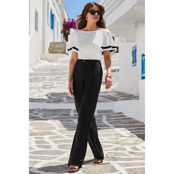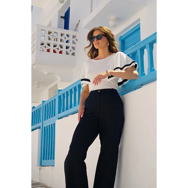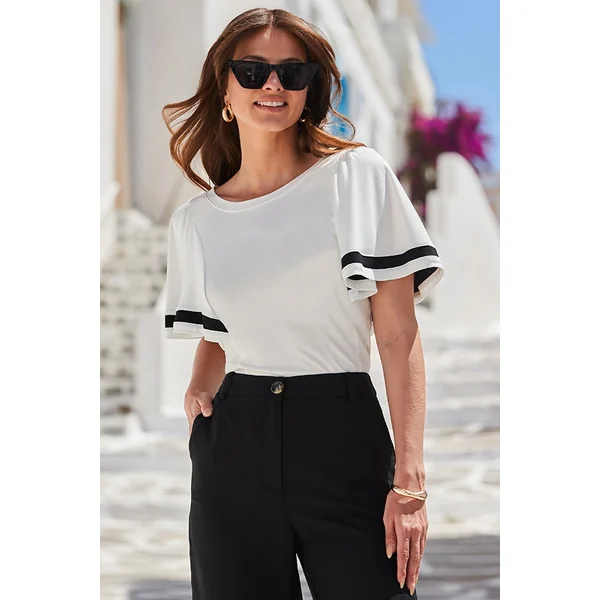 Be the first to review “White & Black Contrast Trim Angel Sleeve Top”