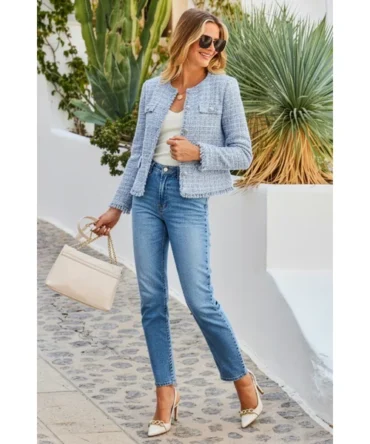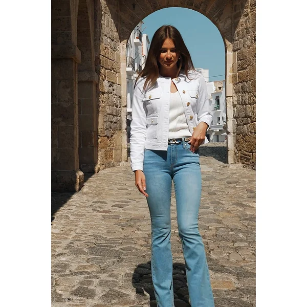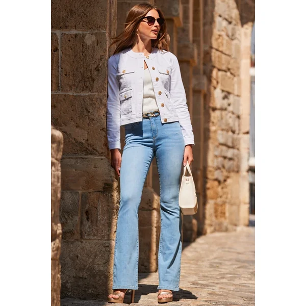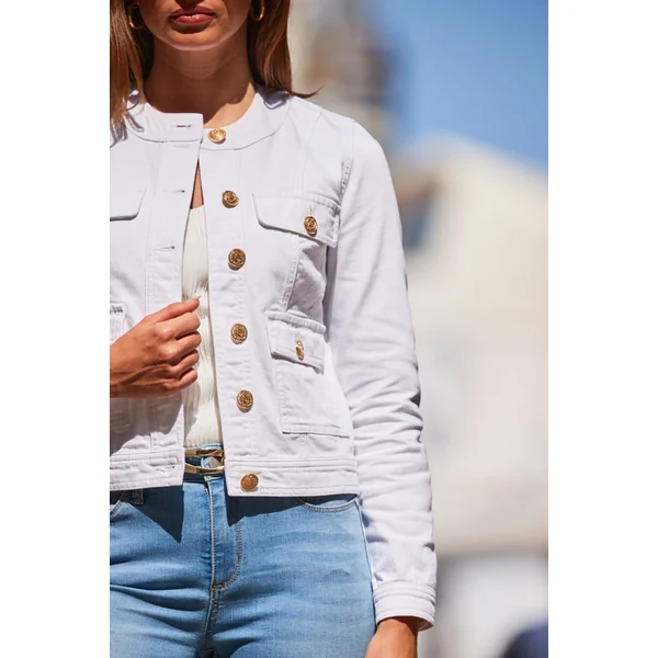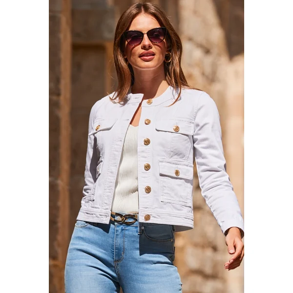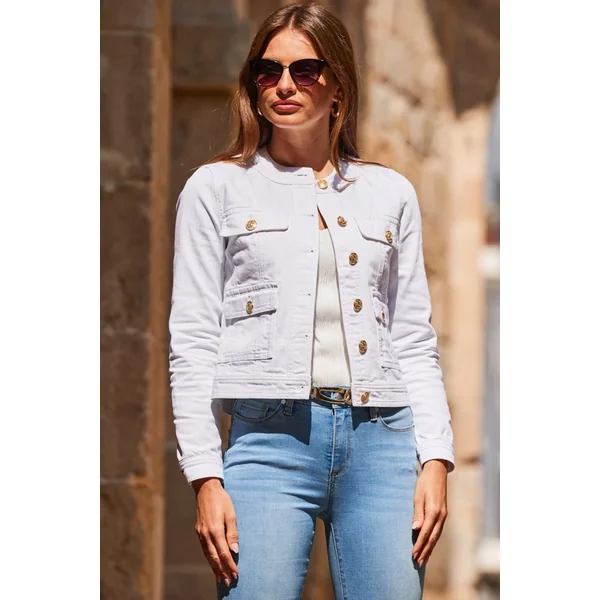 Be the first to review “White Round Neck Pocket Front Denim Jacket”