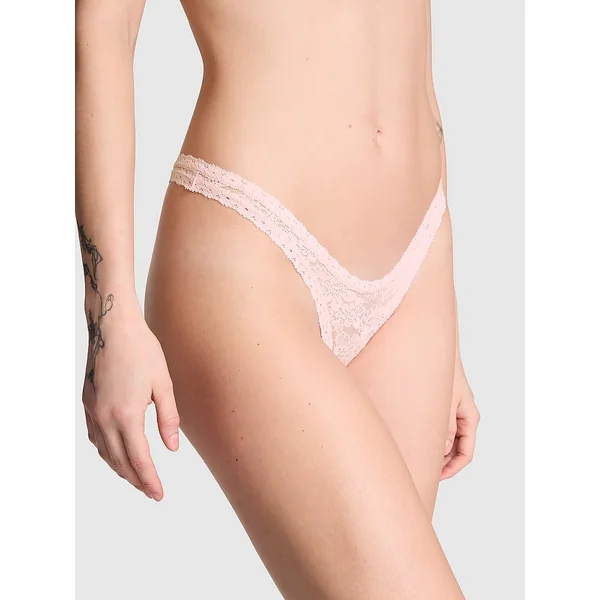 Meet our skimpiest silhouette. A flattering high-cut thong in allover lace, featuring lace trim at the waist and leg opening.