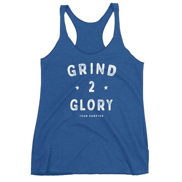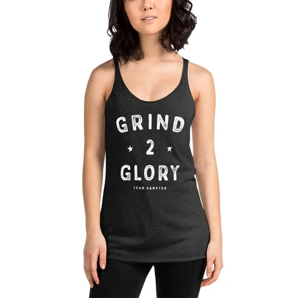 No grind. No glory. Stay cool while you crank out your session, and sport your favorite fitness brand with our women’s “Grind 2 Glory” Racerback Tank!
