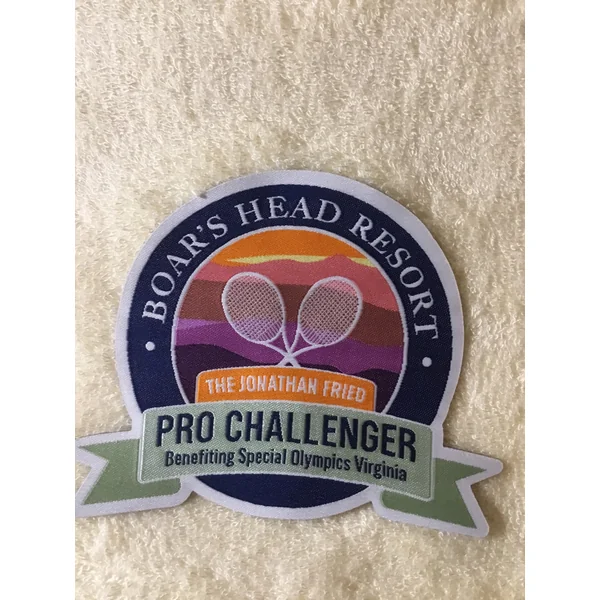 Woven label with a sticky back. Sticks on books, back of cell ph, computer tops.