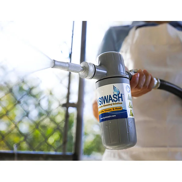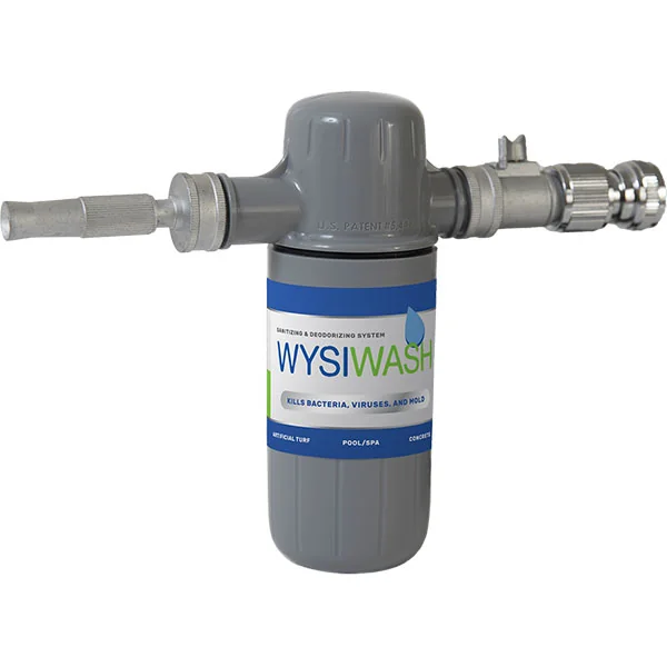 Wysiwash-V Sanitizer power washer is a patented, hydro-injection venturi system hose-end sprayer that is precisely calibrated and scientifically designed. It effectively cleans, sanitize and eliminate odors while blasting away dirt with a jet stream of hypochlorous acid produced by combining water with specially formulated chlorine pellets. So easy to use that you will sanitize more often with increased effectiveness.