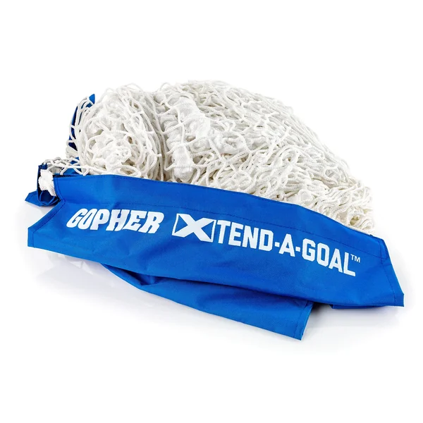 Instantly customize this polypropylene net to fit the adjustable Xtend-a-Goal. Bungees around the outside of the net stretch where needed to fit around the goal. A nylon sleeve on the bottom and hooks on the top keep the net in place. The hooks on the top also allow for quick adjustments to keep the net tight. 4’3″W x 6’1″H x 3’3″D.