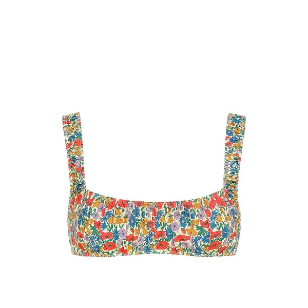 Whether worn traditionally as a bikini or as a bold crop top, this sleek piece will earn you praise. Featuring a chic floral print, cropped silhouette, and a flattering square neckline, it’s a packing list essential.