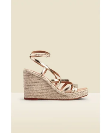 Zaria Champagne Gold Leather Strappy Wedge Espadrille